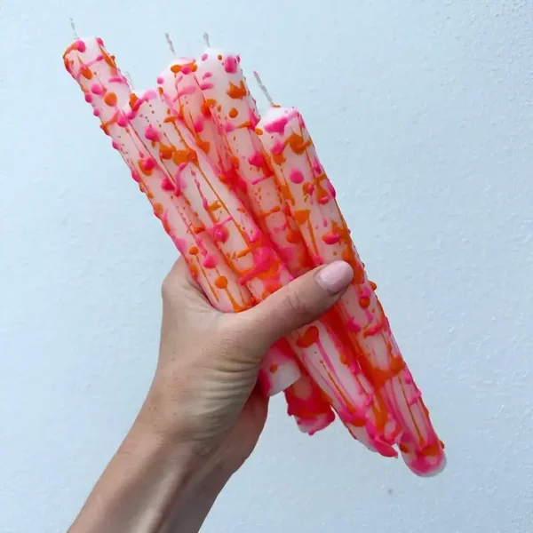 Ethically produced, 100% vegan, and cruelty-free candles. Our Splash Dinner Candles are no exception. This 3-pack of tapered candles adds a vibrant touch to any setting. Handmade and customised in Cornwall, these candles not only illuminate but also contribute to a more sustainable planet with their planet-friendly packaging. Enjoy the warm, Cornish Glow with these exquisite candles.