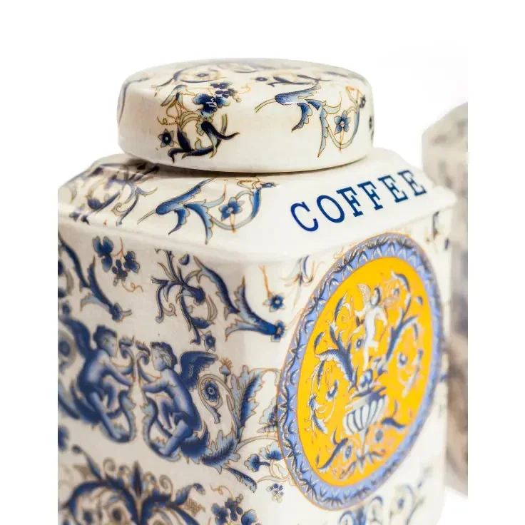 Set of 2 Renaissance Style Ceramic Tea & Coffee Jars Product Dimensions: 18x11.5x11.5cm