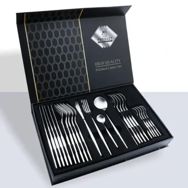 ✔️ Packed in an attractive golden gift box - this cutlery set is perfect for home using, travel camping picnic, restaurants & hotel use; ideal as a housewarming gift to your friends